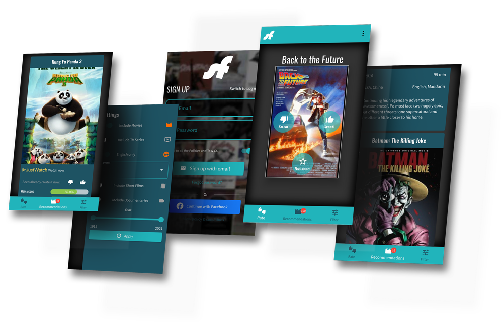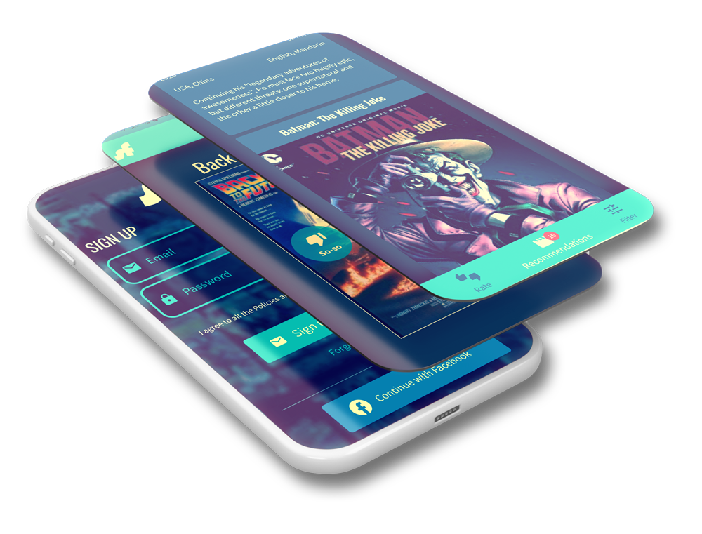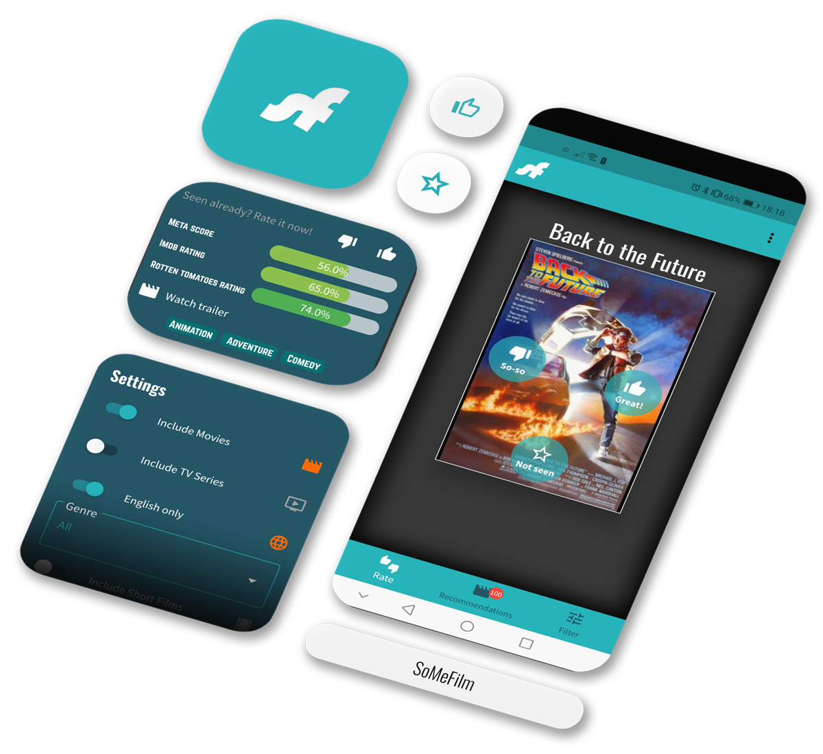 SoMeFilm app gets you the best personalised Movie and TV recommendations available. It works by finding out your likes and dislikes when you rate movies you've already seen and builds up a list of unique, personalised recommendations for you to choose from.